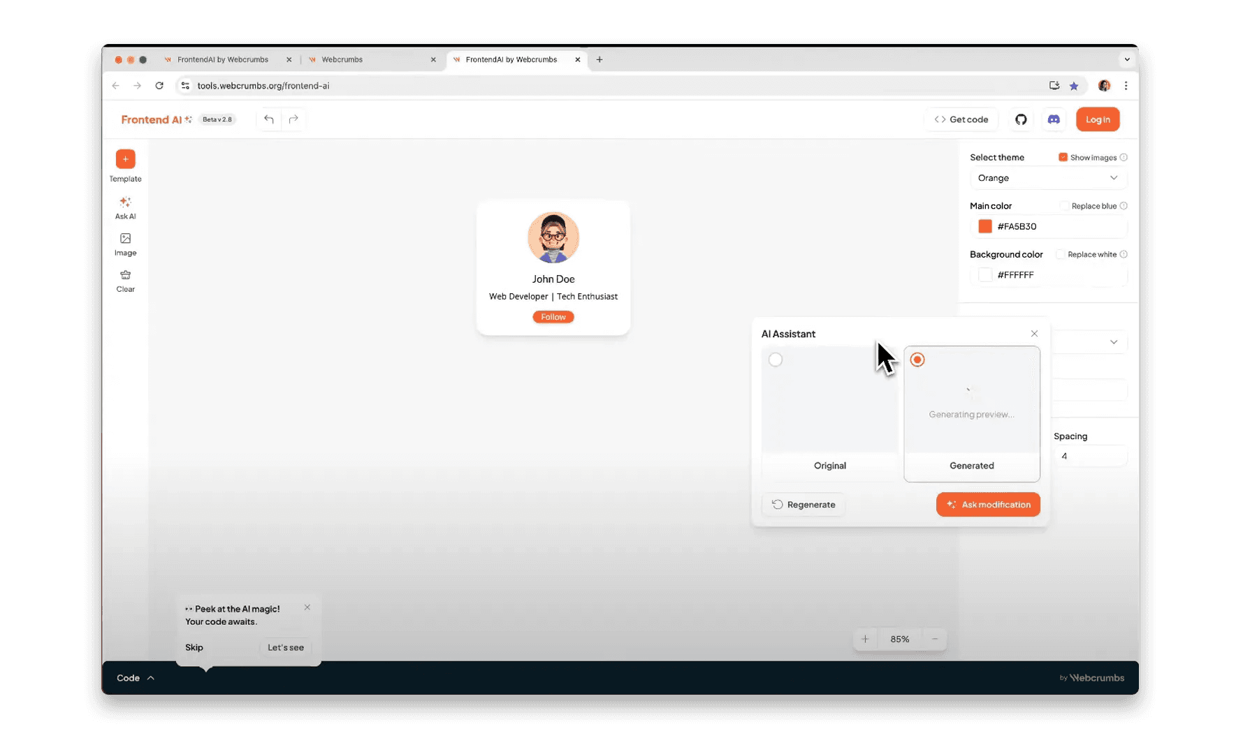 Note: Frontend AI is currently free to use.