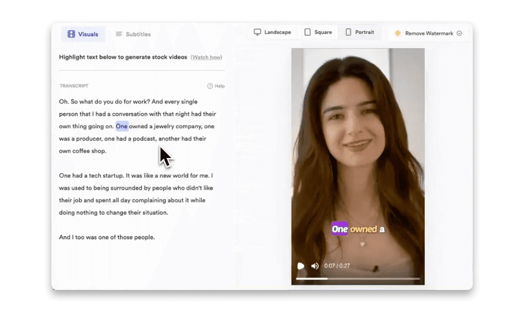 To get the best out of Jupitrr AI, simply upload your audio file or talking head video. The app will generate a transcript for you using AI. Highlight any part of the transcript to instantly get stock footage, GIFs, or images. You can also customize animated subtitles. In just a few steps, your video is ready to go!
