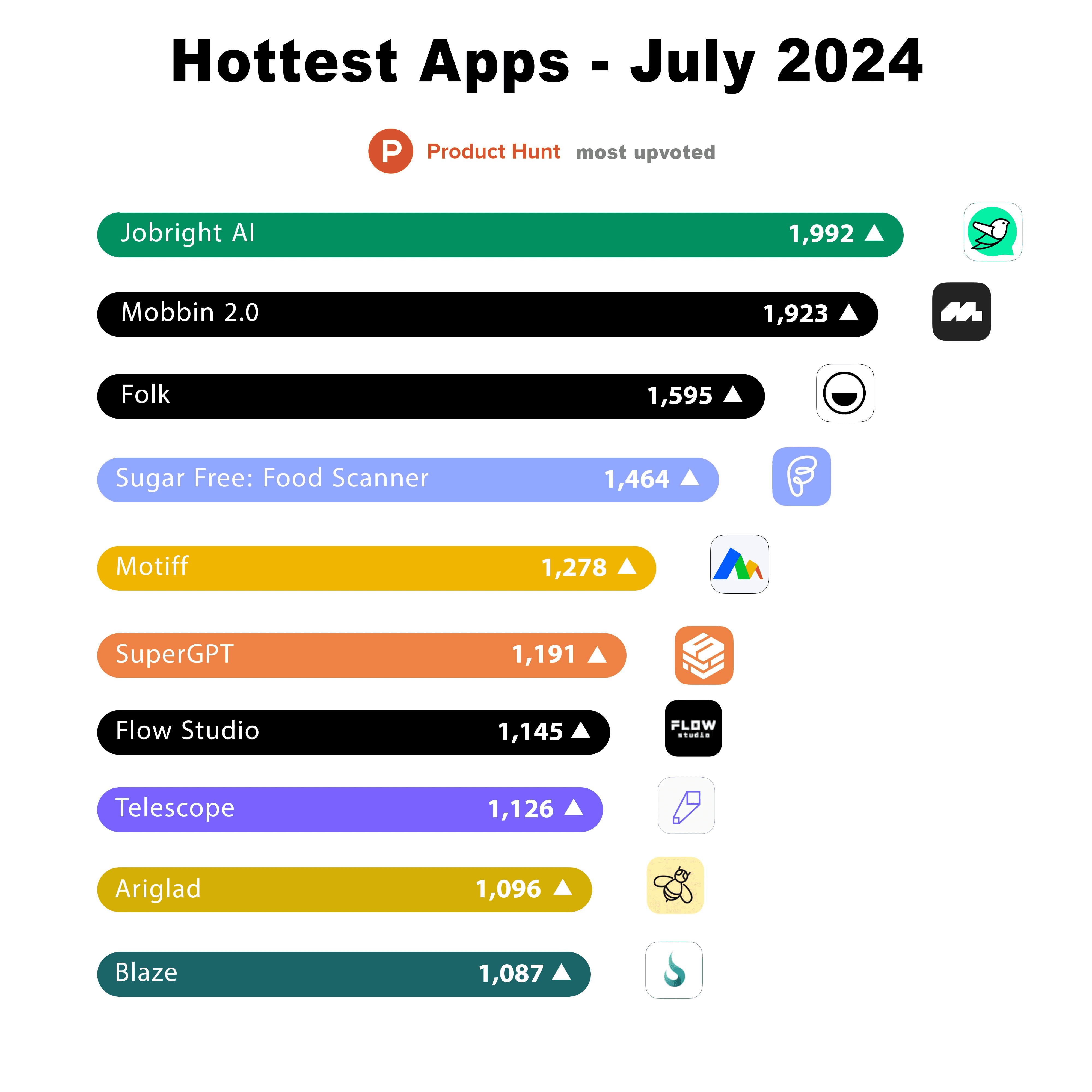 That wraps up the top 10 productivity apps of July 2024, according to most upvoted on Product Hunt.