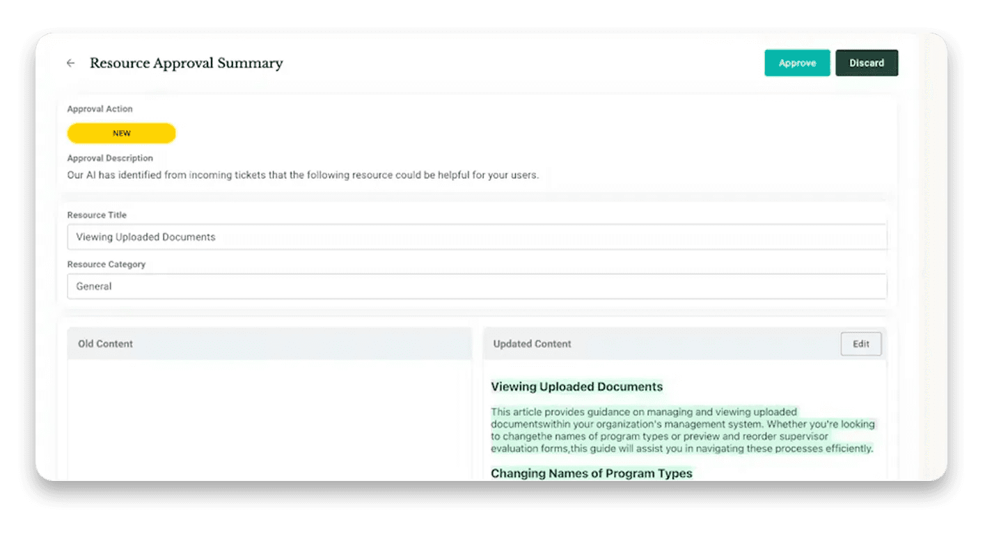 By analyzing support tickets and product release notes, Ariglad is capable of auto-updating your knowledge base and creating new articles that you can later review and approve, maintaining quality control while saving time.