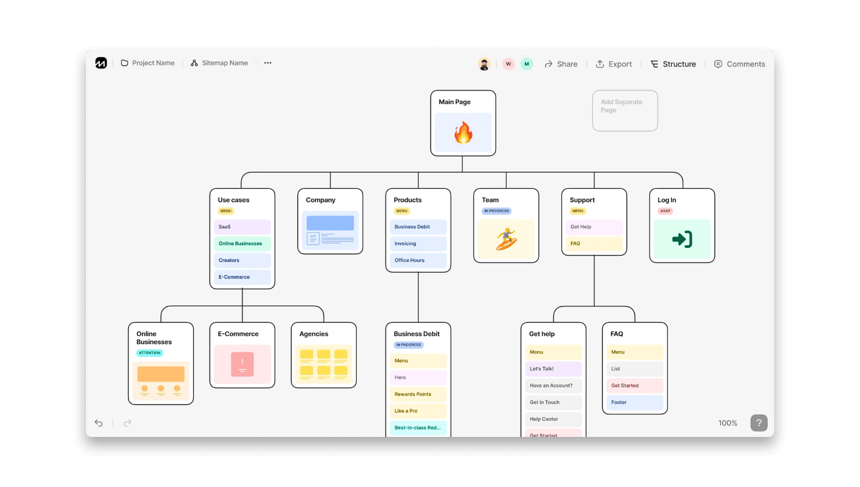 FlowMapp also allows you to master content and export your plans to various formats like PDF, PNG, CSV, and XML. Plus, when you’re ready to move to the UI stage, FlowMapp integrates seamlessly with Figma.