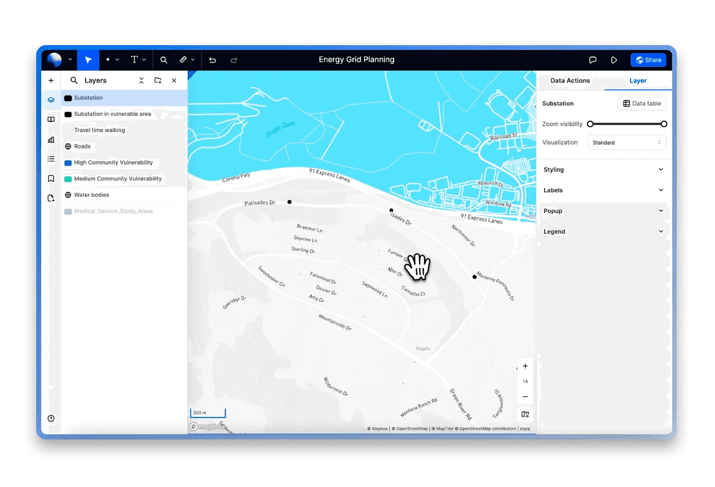 Collaborate with your team in urban planning, environmental assessments, emergency response planning, and much more, with a comprehensive map and an intuitive interface.