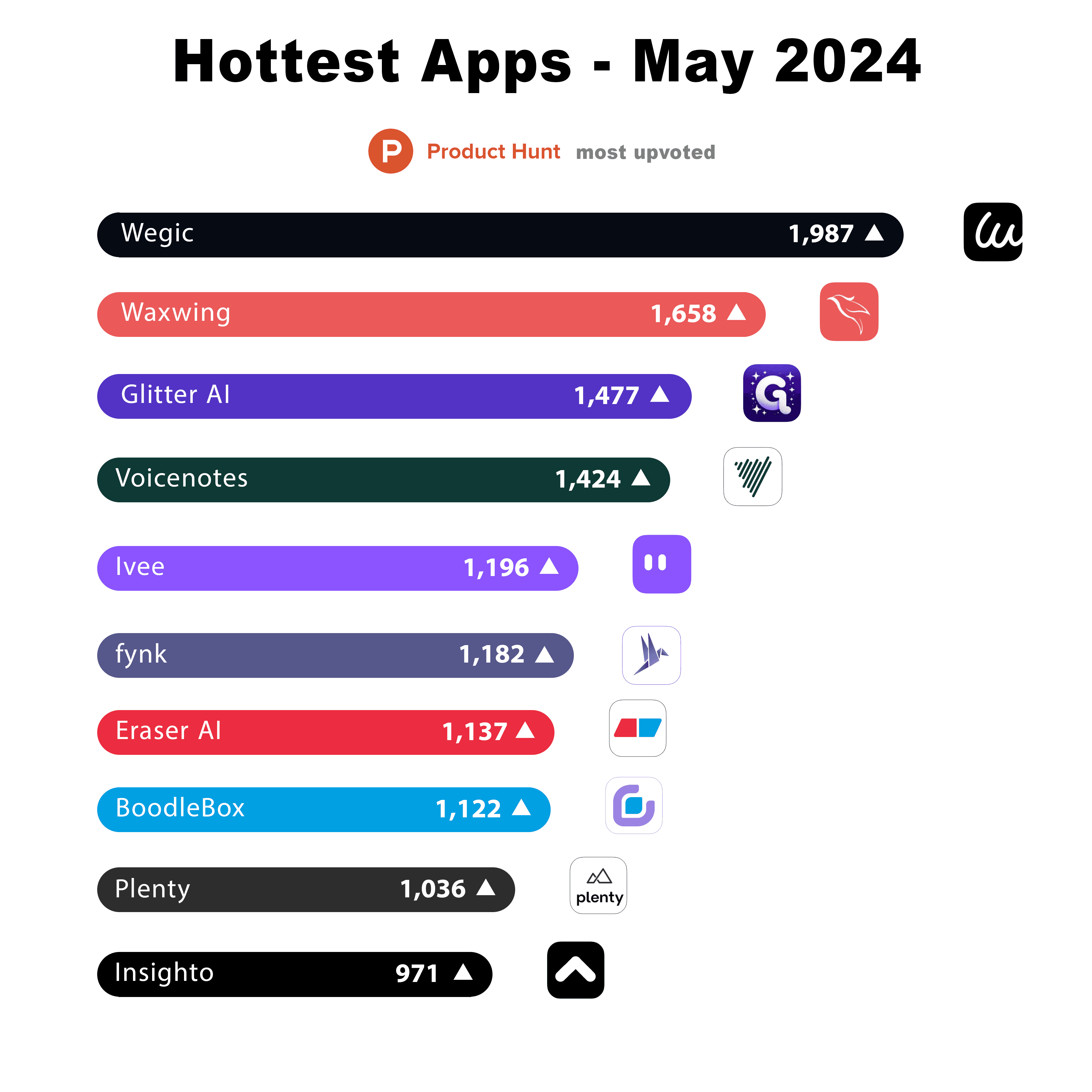 Meet the 10 most upvoted apps in May — via ProductHunt.