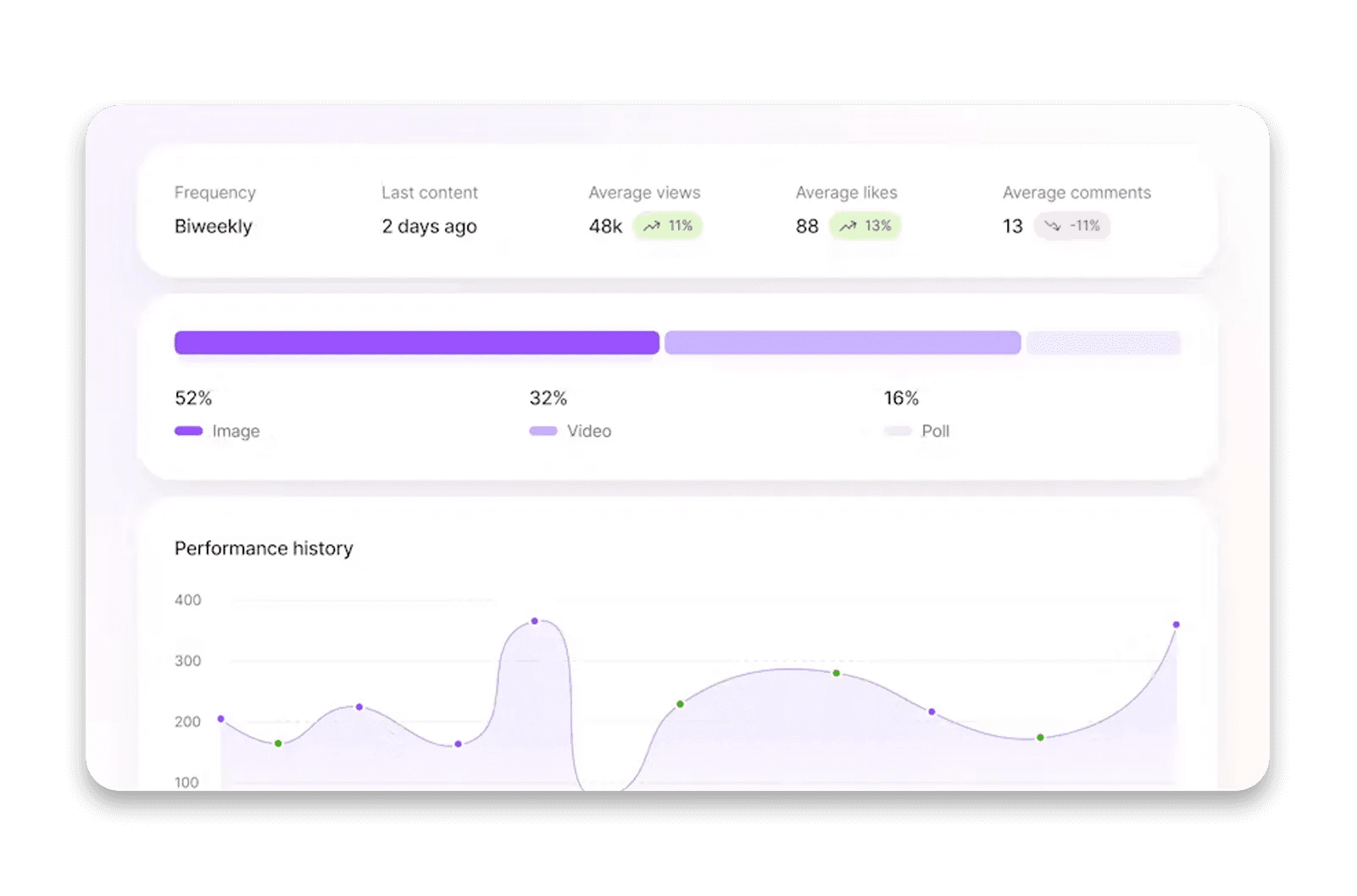 The app provides unique KPIs and data insights, such as engagement rates, performance trends, and sponsorship history, so you can accurately assess the quality of an influencer’s audience.