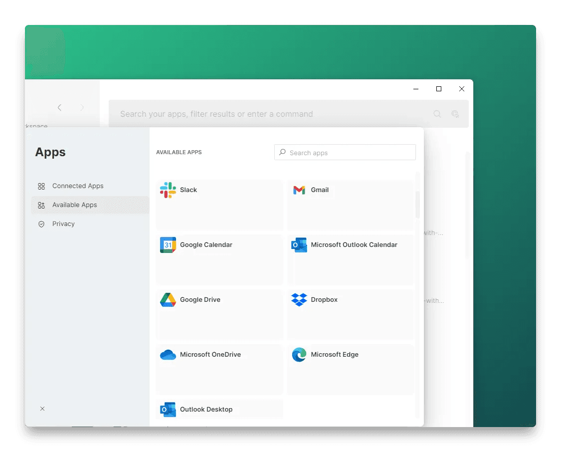 You can now access your Contacts from Google and Outlook, as well as popular productivity tools like Notion, Evernote, and Onenote directly from within the app.