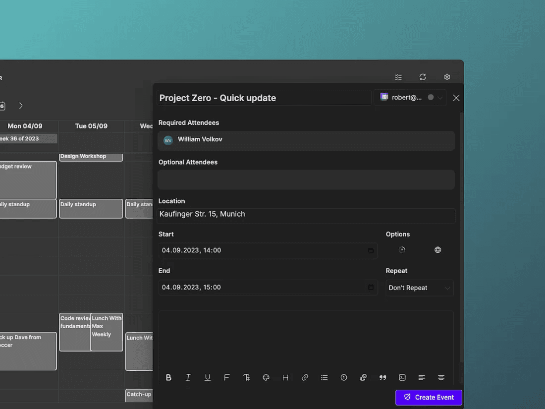 In this new version, you can now create events and send calendar invitations right from the app.