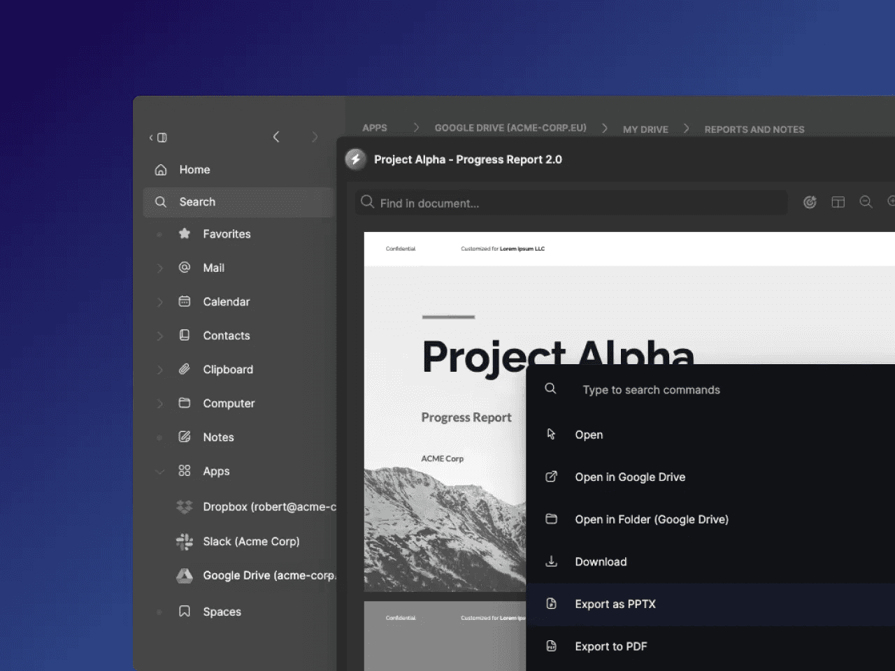 Experience the power of flexibility and seamless collaboration by exporting your Google Drive documents into various formats from inside Curiosity.