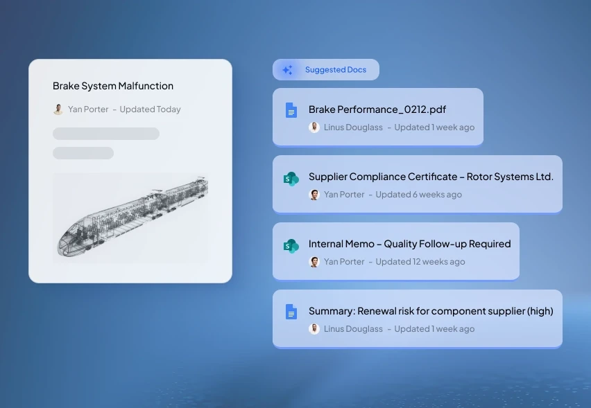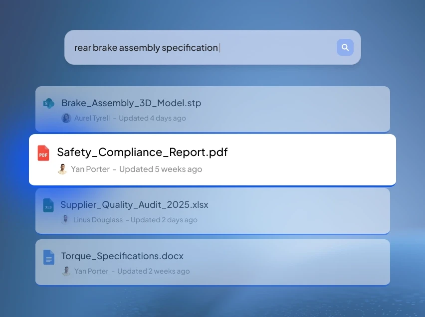 Search across design files, test reports, supplier documents and quality records in seconds, all from one place.